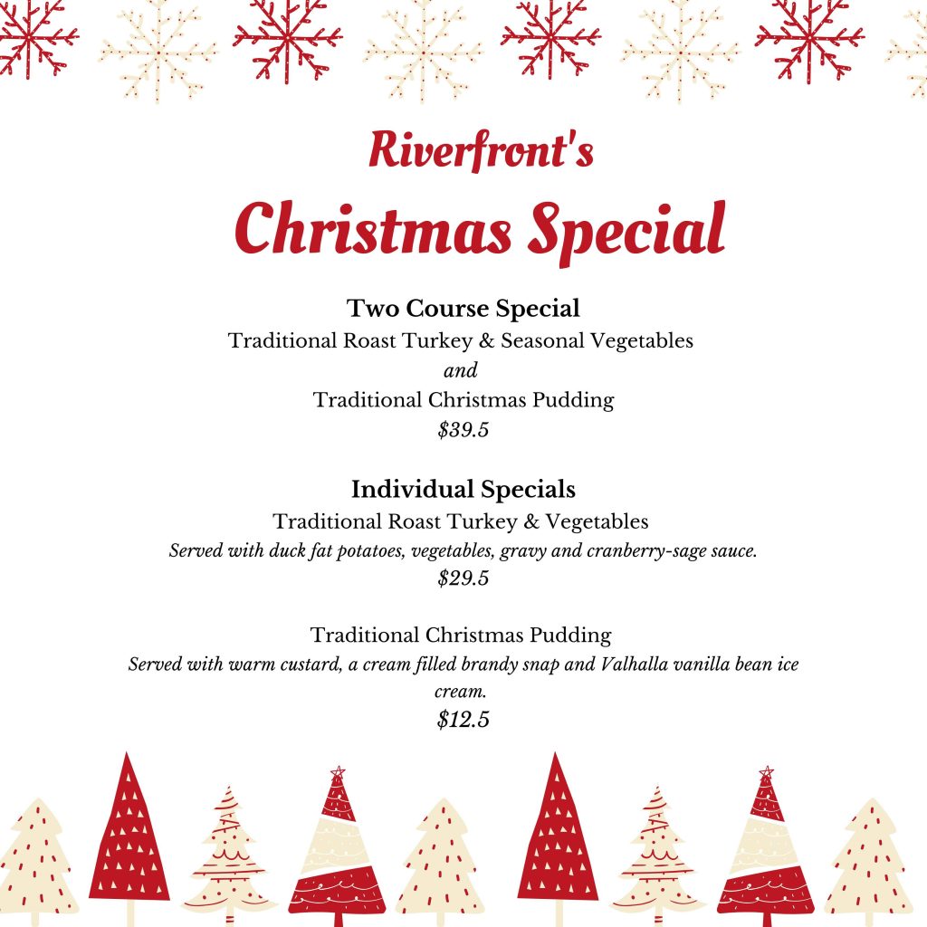 Our Christmas Specials are available for your special occasion in Hobart this festive season. Our Christmas Specials will be available from 20th November until 24th December for lunch & dinner. Traditional Roast Turkey and Christmas Pudding, available as a single or two-course meal.